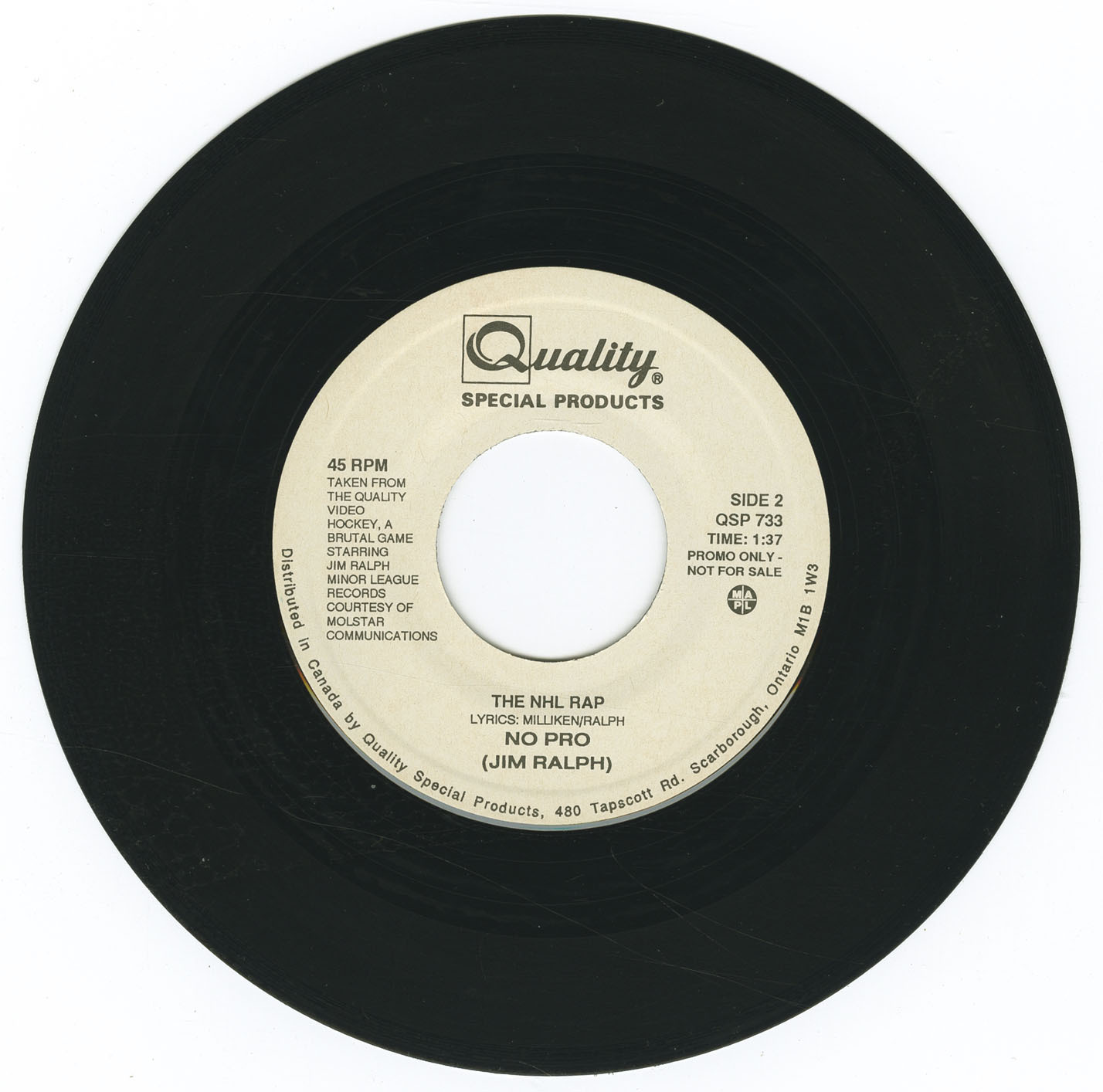 On the flip side of Grapejam comes The NHL Rap by No Pro, the alter ego of former goaltender and beloved broadcaster Jim Ralph. Pulled from the Quality Video release Hockey: A Brutal Game and released under Minor League Records courtesy of Molstar Communications, Ralph's track is a tongue-in-cheek, fast-talking tribute to the rough-and-tumble world of professional hockey.