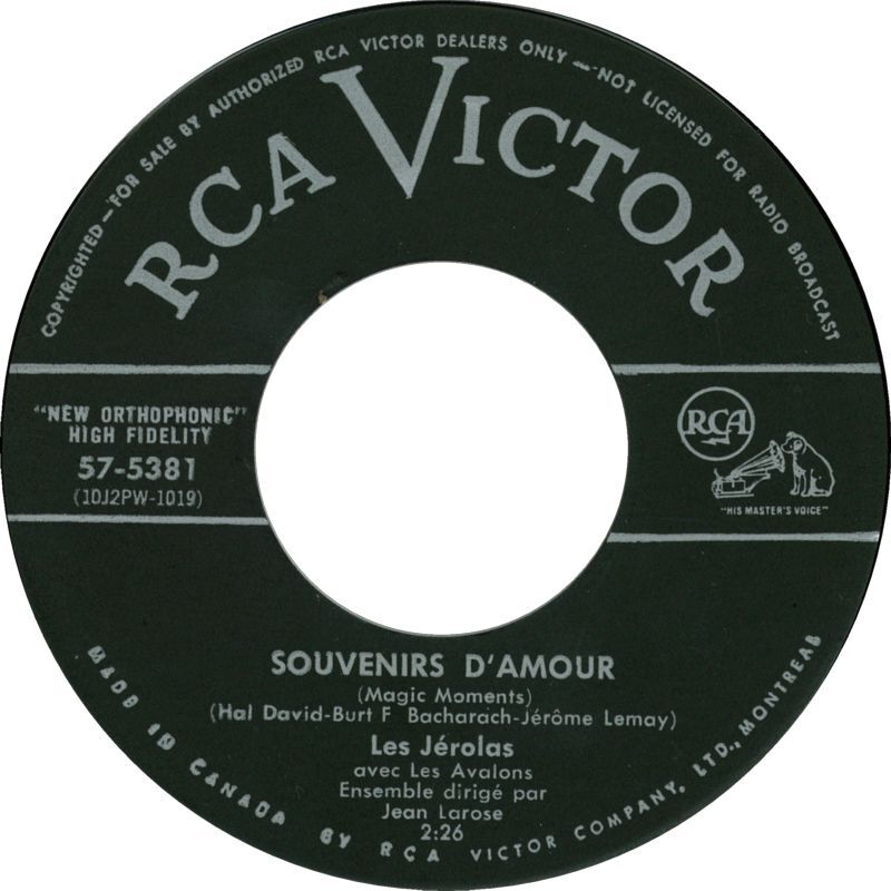 Jerolas, Les - Souvenirs d'amour (Magic Moments) b/w Le rythme de l'amour (I Beg Of You)