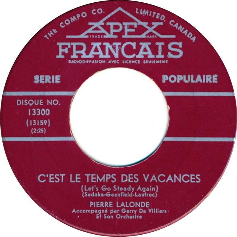 Lalonde, Pierre - C'est Le Temps Des Vacances (Let's Go Steady Again) b/w Seul (Still)