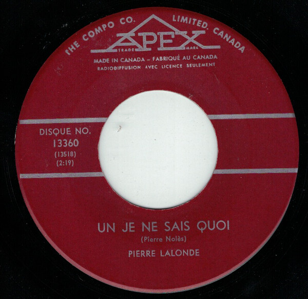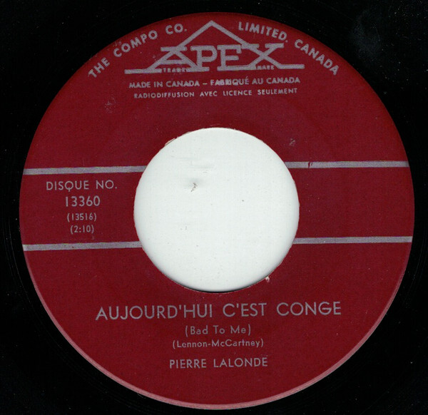 Lalonde, Pierre - Aujourd'hui C'est Congé (Bad To Me) b/w Un Je Ne Sais Quoi