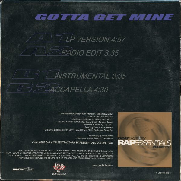 The Beatfactory/EMI RapEssentials: Volume 2 wisely chose "Gotta Get Mine" as the first single off the compilation, catapulting Infinite into the North American spotlight. "Gotta Get Mine" rang in at an incredible number 17 on Energy 108 top 108 of 1997. Infinite has been selected as the spokesperson for "Chill Out", a clothing drive for the homeless, in which the Toronto Blue Jays and Toronto Raptors are sponsors. He has also made a host appearance on MuchMusic's Rap City as well as performing along side Bob Marley's band, The Wailers on MuchMusic's Da Mix, Black History Month discussion panel.