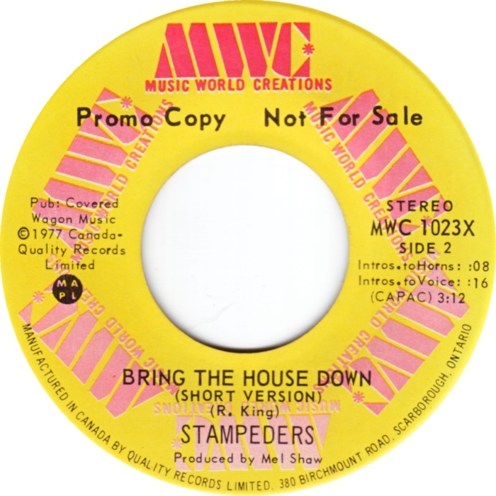 Stampeders - Bring The House Down b/w Bring The House Down (short version) (promo only)