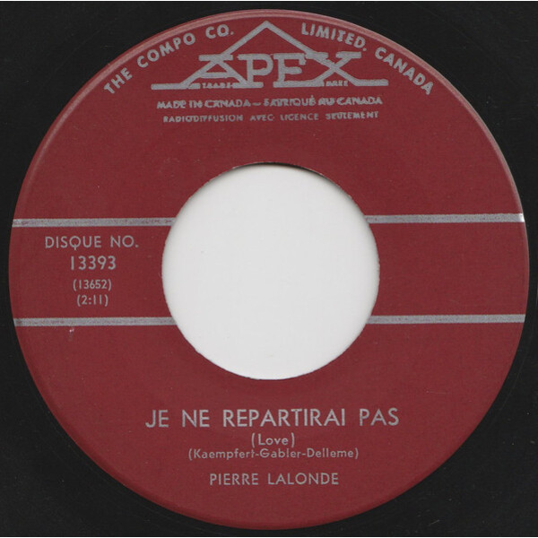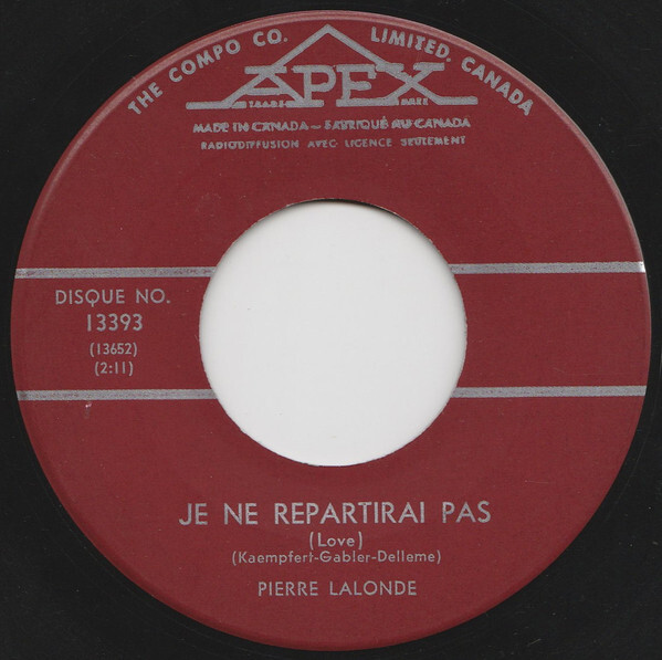 Lalonde, Pierre - Je Ne Repartirai Pas (Love) / Double Jeux (One More Time)