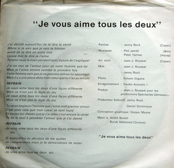 Rock, Jenny - Je Vous Aime Tous Les Deux b/w Je Vous Aime Tous Les Deux - Version Instrumentale (picture sleeve)