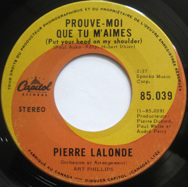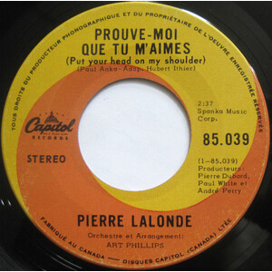 Lalonde, Pierre - Prouves-moi Que Tu M'aimes b/w De Plus En Plus Fort (picture sleeve)