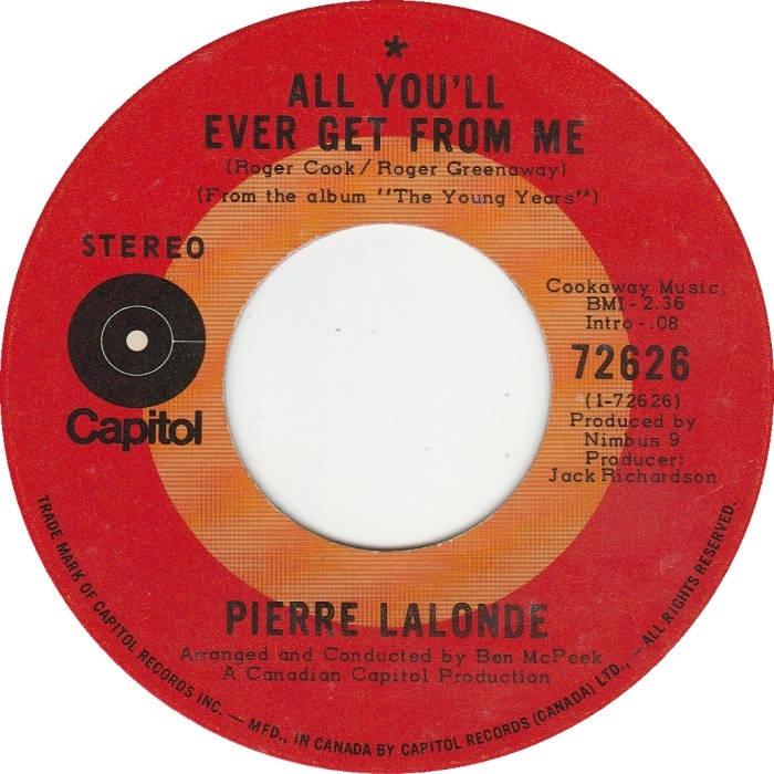 Lalonde, Pierre - All You'll Ever Get From Me b/w What Can You Do