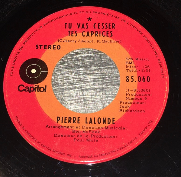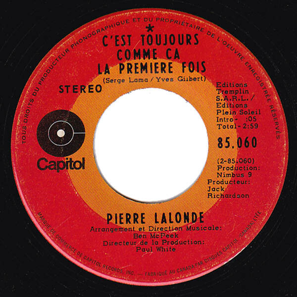 Lalonde, Pierre - C'est Toujours Comme ça La Première Fois b/w Tu Vas Cesser Tes Caprices (Evil Ways)