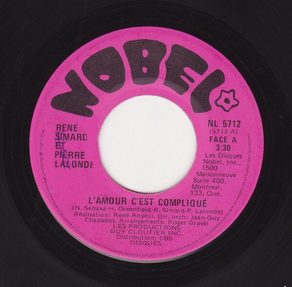 Lalonde, Pierre - René Simard, Pierre Lalonde L'Amour C'est Compliqué b/w L'amour C'est Compliqué (Instrumental)
