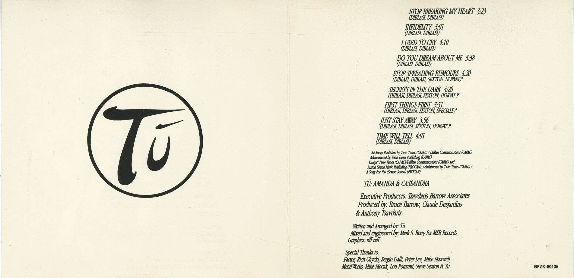 The sisters, who trained at the Royal Conservatory of Music from an early age, were already fixtures in the Toronto studio and commercial scene by their mid-teens. Their musical journey took a professional turn when they were discovered by Steve Sexton, former keyboardist for Red Rider, after appearing as extras in a music video. Sexton introduced them to Bruce Barrow, best known for his production work with Platinum Blonde. Barrow would become the architect of Tú’s sound and produced both of their albums.