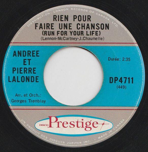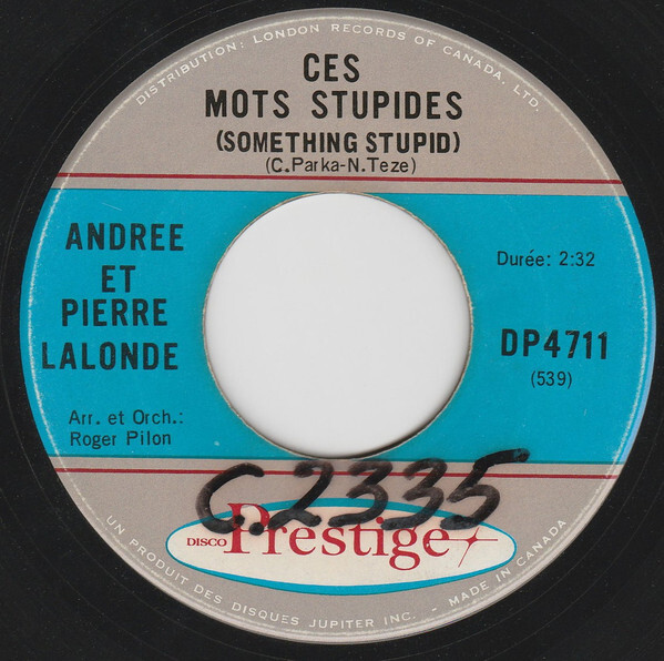 Lalonde, Pierre - Pour Faire Une Chanson (Run For Your Life) b/w Ces Mots Stupides (Something Stupid) (et Andree Lalonde)