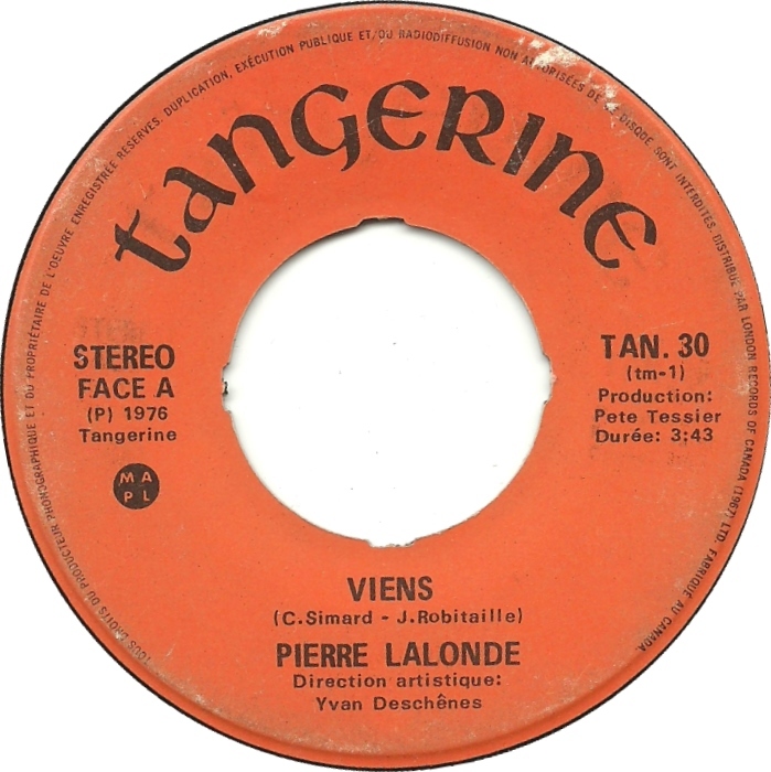 Lalonde, Pierre - Viens b/w Je Serai Le Premier à Mirabel