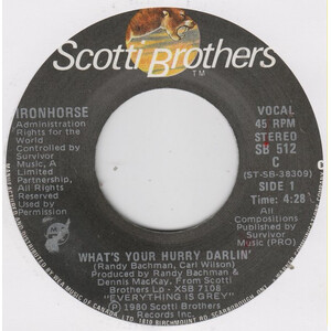Ironhorse - What's Your Hurry Darlin' b/w Try A Little Harder