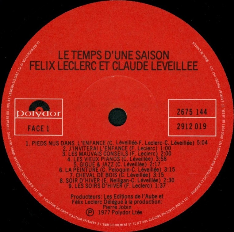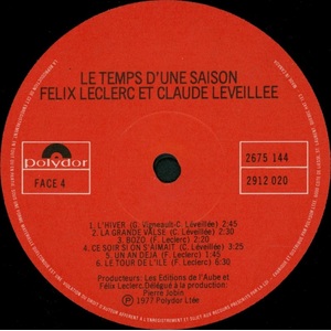 Léveillée, Claude - Le temps d'une saison (et Félix Leclerc) (2 LP)