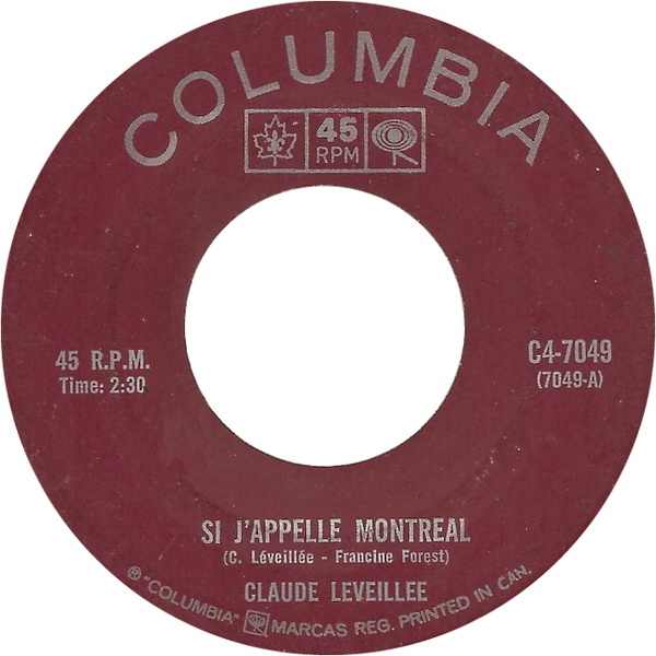 Léveillée, Claude - Si J'appelle Montréal b/w Ou Va Mon Coeur