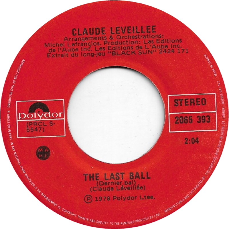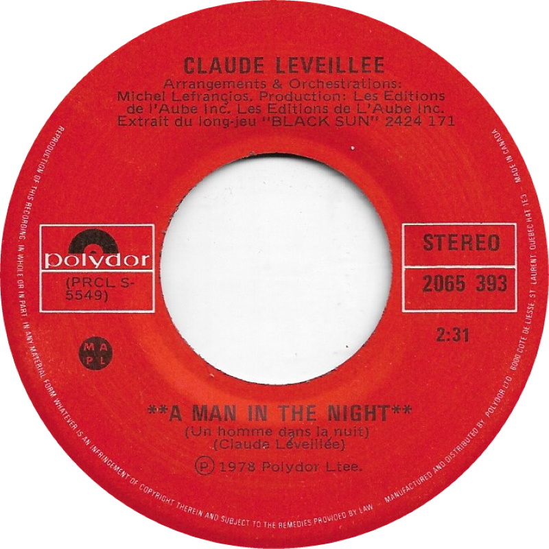 Léveillée, Claude - A Man In The Night (Un homme dans la nuit) b/w The Last Ball (Dernier bal)