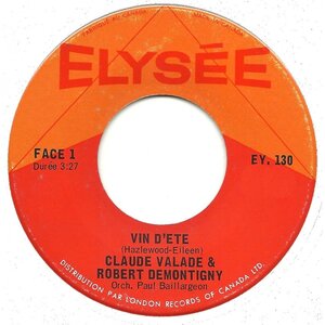 Valade, Claude - Claude Valade Et Robert Demontigny Vin D'été b/w La Chanson Sur Une Note
