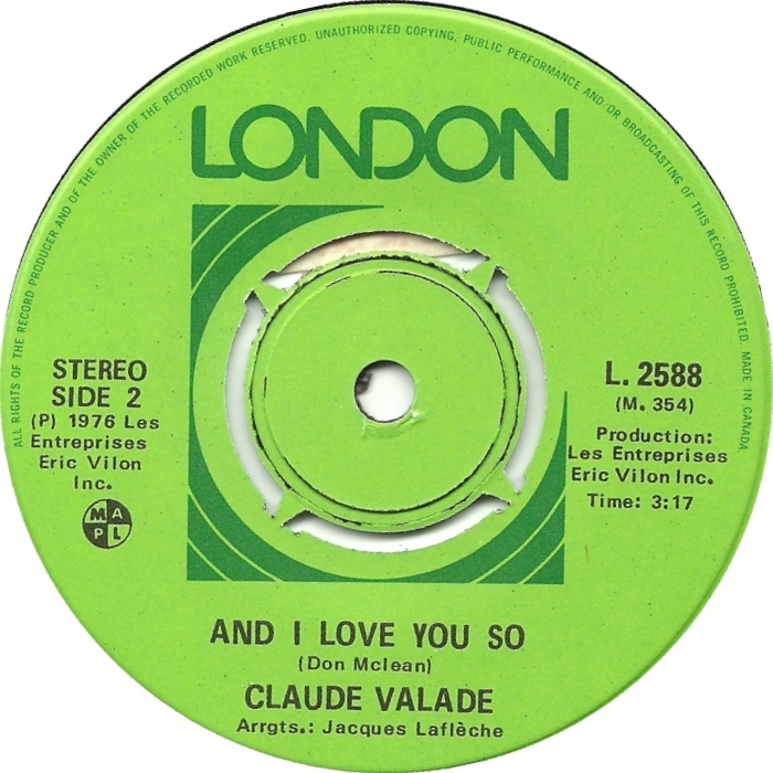 Valade, Claude - Apple Of My Eye b/w And I Love You So (picture sleeve)