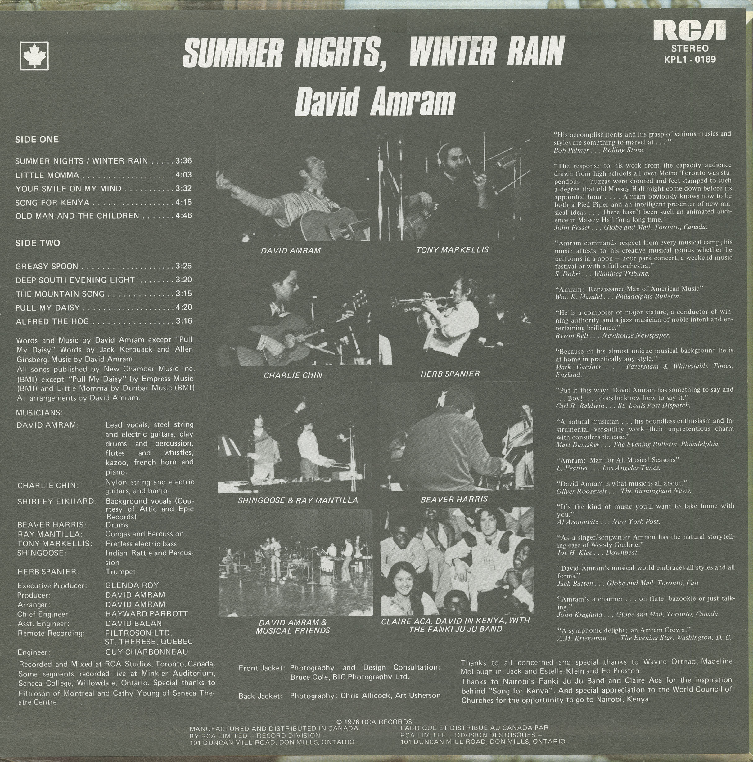 Issued exclusively in Canada by RCA, the album came with a lyric sheet and included selections recorded in concert. It stands as a testament not only to Amram’s boundary-erasing musical vision but also to the strength and versatility of Canadian players in the 1970s who embraced his open-ended approach to music-making.