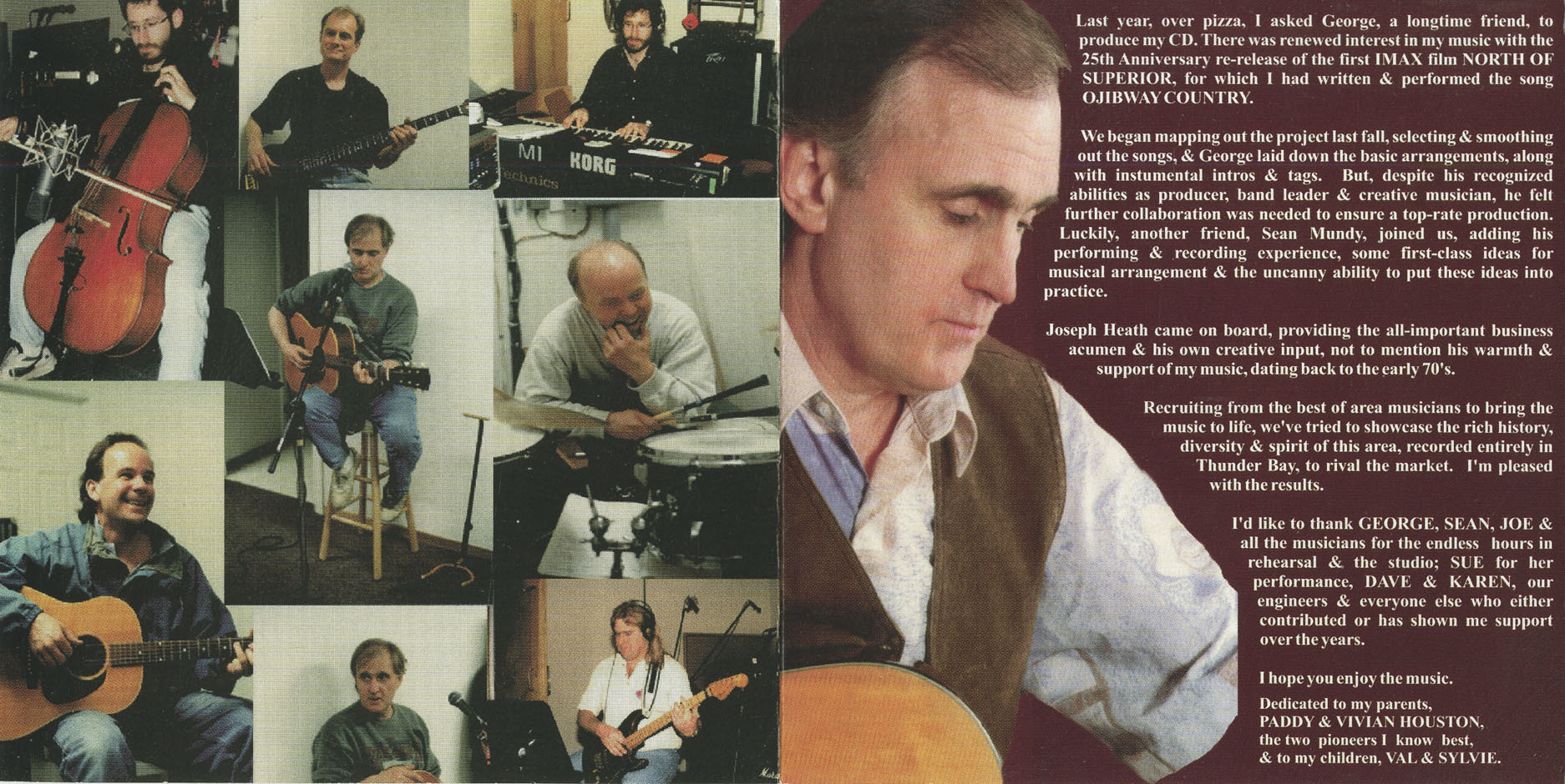 Last year, over pizza, I asked George, a longtime friend, to produce my CD. There was renewed interest in my music with the 25th Anniversary re-release of the first IMAX film NORTH OF SUPERIOR, for which I had written & performed the song OJIBWAY COUNTRY.