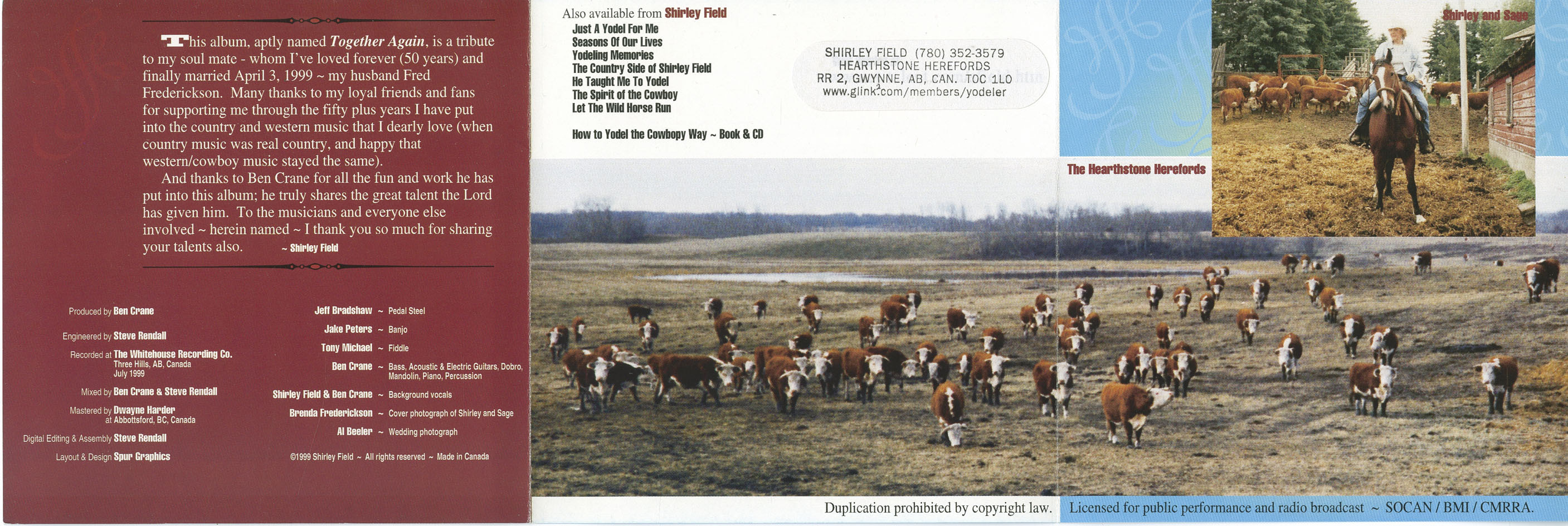 Recorded at The Whitehouse Recording Co., Three Hills, Alberta, July 1999